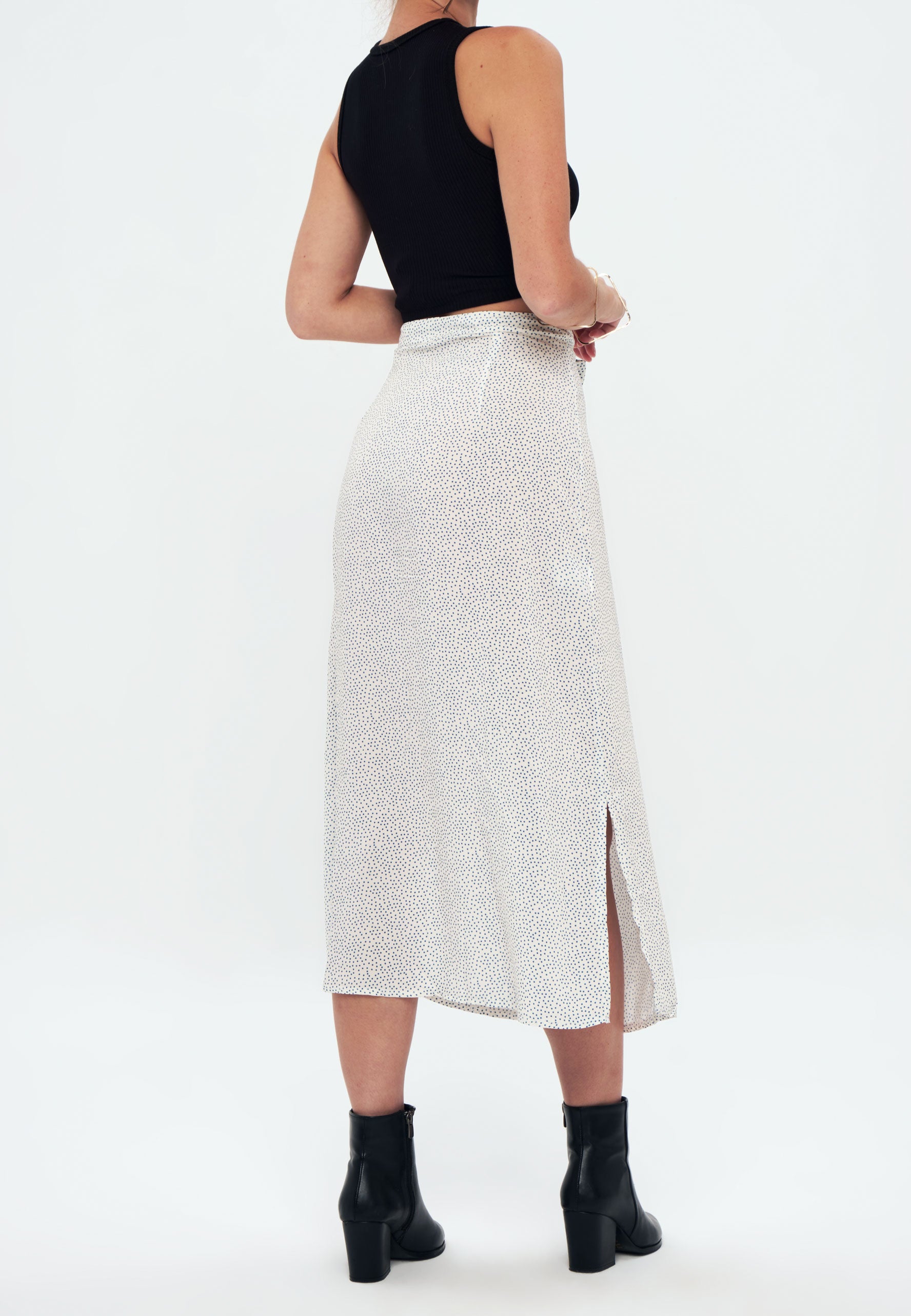 Herita Printed Long Slit Skirt White blue spot