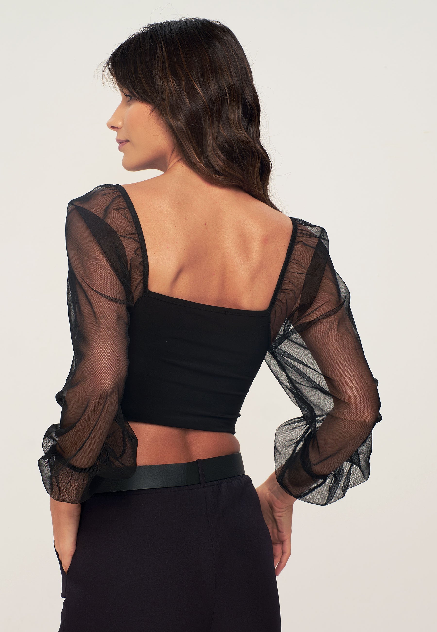 Herita Women's Sleeves Tulle Blouse with Shirred Front