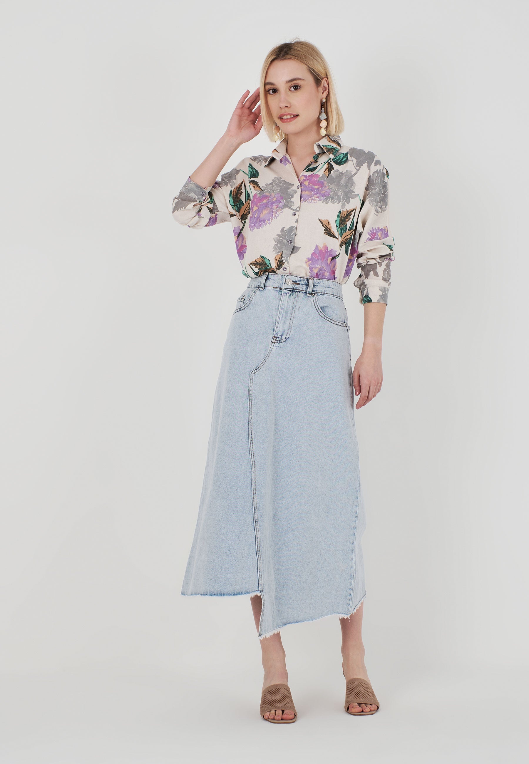 Herita Women's Symmetrical Pattern Tasseled Denim Skirt