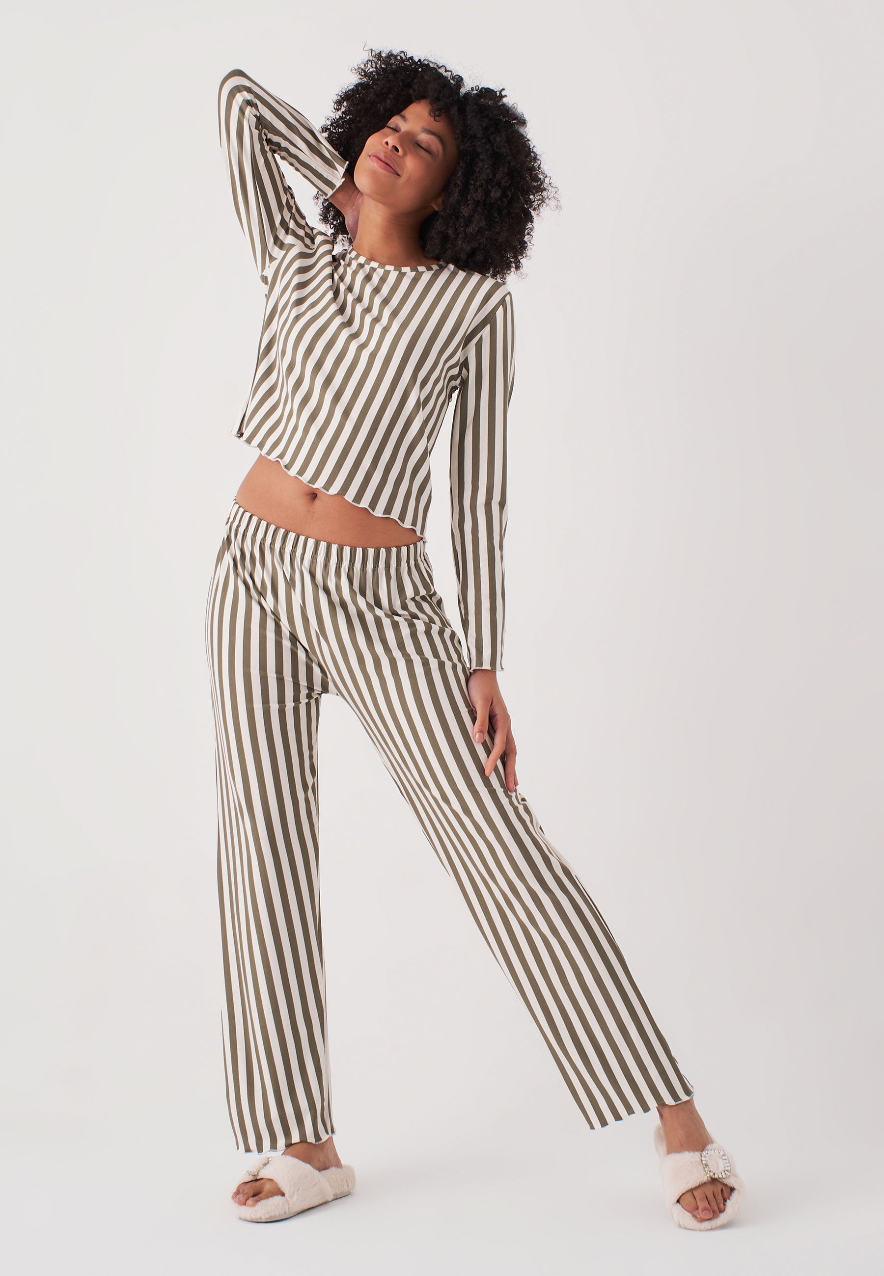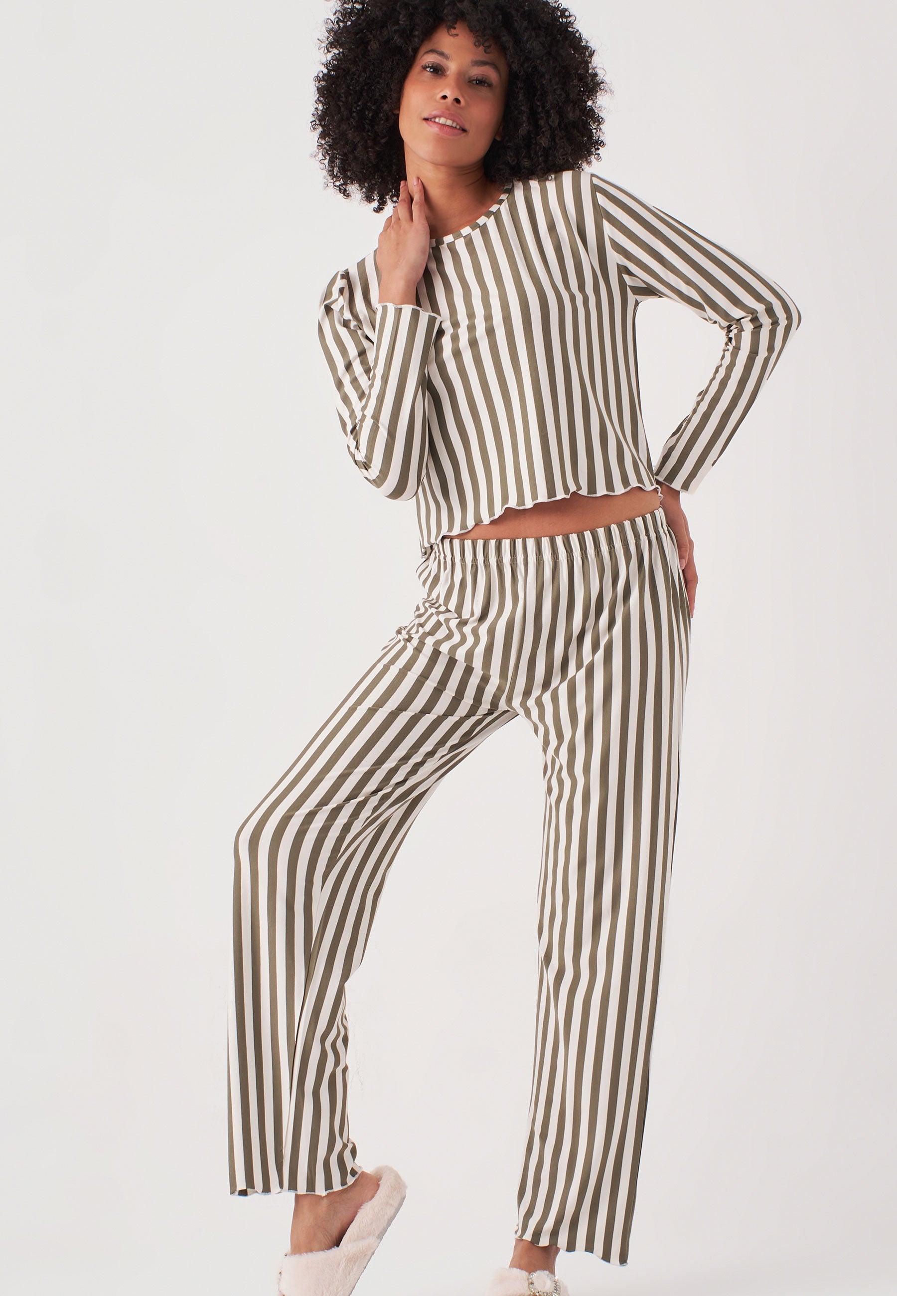 Long Sleeve Striped - Pyjama Set - Grey ------------------------------------------------------------------- Indulge in the ultimate comfort and style with our Long Sleeve Striped Pyjama Set in Grey. This cozy and chic ensemble is the perfect addition to your sleepwear collection, designed to provide a restful night's sleep while looking effortlessly elegant. Crafted with high-quality materials, this pyjama set offers unmatched comfort and durability, making it a long-lasting sleepwear option. The classic striped design adds a touch of sophistication, elevating your bedtime routine. Embrace relaxation in style with our Long Sleeve Striped Pyjama Set, the ideal choice for your cozy nights. ------------------------------------------------------------------- Article Bullet Points: * Cozy and Stylish: Experience ultimate comfort and style with our Long Sleeve Striped Pyjama Set in Grey. * Premium Quality: Crafted with top-notch materials for a luxurious and long-lasting sleepwear option. * Flattering Fit: The set's design enhances your silhouette, making you feel fabulous and confident. *Complete Sleep Ensemble: The set includes a long sleeve shirt and pyjama bottoms, providing a perfect sleepwear solution. * Effortless Elegance: Embrace effortless elegance even during bedtime with our Striped Pyjama Set. ------------------------------------------------------------------- Quality and Use: * Unmatched Comfort: Indulge in luxurious comfort with our high-quality sleepwear materials. * Durable and Long-lasting: This set is designed to withstand frequent use and maintain its excellence. * Perfect for Restful Nights: Experience a restful night's sleep in our Long Sleeve Striped Pyjama Set. * Relax in Style: Embrace relaxation with style in our chic and comfortable pyjama set. * Versatile Wardrobe Staple: A versatile sleepwear option suitable for various bedtime routines and lounging. ------------------------------------------------------------------- Design Highlights: * Timeless Stripes: The classic striped design adds a touch of elegance to your sleepwear collection. * Soft and Luxurious: The fabric offers a soft and luxurious feel, perfect for a cozy night's sleep. ------------------------------------------------------------------- Washing Methods: * Machine wash in cold water on a gentle cycle for easy care. * Use a mild detergent to preserve the fabric's quality and color. * Wash similar colors together to maintain the set's vibrancy. * Avoid using bleach or harsh chemicals that may damage the fabric. * Tumble dry on low heat or hang to air dry to keep the set in top condition.